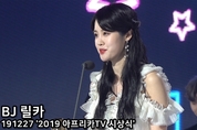 27일 오후 서울 서초구 양재동에 위치한 양재aT센터에서 '2019 아프리카TV 시상식(= 2019 BJ Awards)'이 진행되어 BJ 릴카가 '게임 엔터테이너 BJ' 부문에서 대상을 수상 받고 있다.
