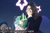 27일 오후 서울 서초구 양재동에 위치한 양재aT센터에서 '2019 아프리카TV 시상식(= 2019 BJ Awards)'이 진행되어 BJ 덕자(= 덕자전성시대)가 '라이프 BJ' 부문에서 대상을 수상 받고 있다.