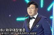27일 오후 서울 서초구 양재동에 위치한 양재aT센터에서 '2019 아프리카TV 시상식(= 2019 BJ Awards)'이 진행되어 BJ 와꾸대장봉준이 '최고의 콘텐츠' 부문 상을 수상 받고 있다.