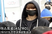 15일 오전 인천광역시 중구에 위치한 인천국제공항 제2터미널에서 그룹 아스트로가 해외 일정을 마치고 입국하고 있다.
