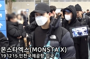 15일 오후 인천광역시 중구에 위치한 인천국제공항 제2터미널에서 그룹 몬스타엑스가 해외 일정을 마치고 입국하고 있다.