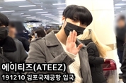 10일 오후 서울 강서구에 위치한 김포국제공항에서 그룹 에이티즈(ATEEZ)가 해외 일정을 마치고 입국하고 있다.