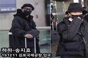 11일 오후 서울 강서구에 위치한 김포국제공항에서 가수 하하와 배우 송지효가 해외 일정을 마치고 입국하고 있다.