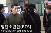 12월 5일 오후 인천시 중구 운서동 인천국제공항에 방탄소년단(BTS) RM 슈가, 진, 제이홉, 지민, 뷔, 정국이 2019 엠넷 아시안 뮤직 어워즈(MAMA)’ 행사를 마치고 일본에서 입국하고 있다.