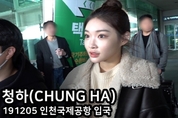 5일 오후 인천광역시 중구에 위치한 인천국제공항 제1터미널에서 가수 청하가 '2019 MAMA(Mnet Asian Music Awards 2019 엠넷 아시안 뮤직 어워즈)'를 마치고 입국하고 있다.