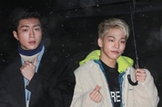 2월 15일 오전 서울시 영등포구 여의도 KBS 신관 공개홀에서 열린 '뮤직뱅크' 출근길에온앤오프가 참석해 포즈를 취하고 있다.