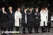 2월 15일 오전 서울시 영등포구 여의도 KBS 신관 공개홀에서 열린 '뮤직뱅크' 출근길에원어스가 참석해 포즈를 취하고 있다.