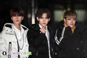 2월 15일 오전 서울시 영등포구 여의도 KBS 신관 공개홀에서 열린 '뮤직뱅크' 출근길에 네온펀치가 참석해 포즈를 취하고 있다.
