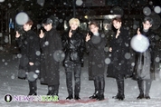 2월 15일 오전 서울시 영등포구 여의도 KBS 신관 공개홀에서 열린 '뮤직뱅크' 출근길에배너가 참석해 포즈를 취하고 있다.