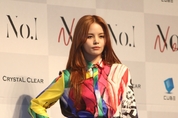 30일 오후 서울시 용산구 한남동 블루스퀘어에서 CLC 미니 8집 'No.1' 발매기념 쇼케이스가 열려 CLC 엘키가 포토타임에 포즈를 취하고 있다. 타이틀곡 'No'는 신스 베이스 특유의 질감과 다이내믹한 베이스라인이 어우러진 댄스 곡으로, '한 가지 색으로는 날 표현할 수 없다'는 당당함과 자신감을 표현한 가사가 인상적이다.