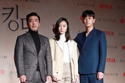 21일 오전 서울 삼성동 인터콘티넨탈 서울 코엑스 그랜드볼룸에서 넷플릭스 오리지널 시리즈 '킹덤' 제작발표회가 열려 배우 류승룡, 배두나, 주지훈이 참석해 포즈를 취하고 있다. '킹덤'은 죽었던 왕이 되살아나자 반역자로 몰린 왕세자가 향한 조선의 끝, 그곳에서 굶주림 끝에 괴물이 되어버린 이들의 비밀을 파헤치며 시작되는 미스터리 스릴러로 총 6부작으로 제작, 25일 넷플릭스를 통해 처음 방송한다.