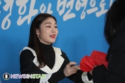 9일 오후 강원도 강릉시 강릉 아이스아레나에서'2018 평창 동계올림픽대회 및 동계패럴림픽대회' 성공 개최 1주년 기념 'Again 평창'행사가 열려 부대행사로 '올림픽을 추억하는 특별한 만남'으로 올림픽을 빛낸 스포츠 스타들의 팬사인회가 열려 김연아가 참석해 포즈를 취하고 있다. 강원도 전역에서 2월 7일부터 2월 17일 까지 강원도 펼쳐지는'Again 평창' 행사는 '하나된 열정, 평화와 번영으로!'를 슬로건으로 정하고 "'Again 평창'을 올림픽의 유산을 계승하고 '평화 메시지'를 재조명하여 평화분위기를 정착 확산하는 행사를 개최한다.