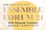 앙상블 포럼21의 열 번째 정기연주회가 ‘십년지기(十年知己)’를 부제를 6월 29일(토) 오후 8시 예술의전당 IBK챔버홀에서 열린다. 앙상블 포럼21은 연주 활동에서 음악가로서의 진정한 의미를 두는, 음악을 통해 할 이야기가 가장 많은, 고양된 예술혼을 일깨우고자 끊임없이 노력하는 음악가들이 모인 그룹이다. 진지함, 몰입, 예술적 코드, Enthusiasm(열성), 순수함 등은 앙상블 포럼21의 색깔이기도 하다. 앙상블 포럼21은 음악적 경지를 관객들과 함께 나누고 싶어 하며, 그 동안 여러 무대를 통해 학구적 취지를 살린 여러 문제작들을 연주하여 큰 호응을 얻었다. 2009년 10월 창단연주 이후 네 번의 예술의전당에서의 정기연주회(2010-2013), 여러 자선음악회 외 스마일 포 더 칠드런 재단 초청연주(2009), 유나이티드문화재단 초청연주(2010), 국립중앙박물관초청연주(2011), 베토벤 현악4중주 전곡 프로젝트(2010), 지역주민을 위한 스쿨 콘서트(2010), 특별연주회(2011), 2012년 정기연주회에서는 런던 필에서 활동하고 있는 젊은 차세대 지휘자 김정민과 함께 슈트라우스의 메타모르포젠, 안톤 베베른 등의 제2비엔나악파의 작품을 소