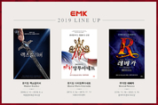 뮤지컬 ‘마타하리’와 뮤지컬 ‘웃는 남자’로 창작뮤지컬 계에 새로운 역사를 쓰고, 뮤지컬 ‘엘리자벳’과 ‘팬텀’으로 연말을 화려하게 수놓고 있는 EMK뮤지컬컴퍼니(이하 EMK)가 2019년 라인업을 발표했다. 창작뮤지컬을 잇달아 성공시키며 브랜드 가치와 신뢰를 쌓아 올린 EMK가 2019년 6월 세 번째 창작뮤지컬 ‘엑스칼리버’로 다시 한번 역대급 무대를 선보인다. 또한 한국 프로덕션이 재창작한 가장 완성도 높은 ‘마리 앙투아네트’와 완벽함을 넘어선 최고의 뮤지컬 ‘레베카’가 다시 돌아와 2019년 하반기를 풍성하게 장식할 예정이다. ‘마타하리’, ‘웃는 남자’ 이은 EMK의 세 번째 창작뮤지컬 ‘엑스칼리버’ 뮤지컬 ‘마타하리’로 국내 창작뮤지컬의 가능성을 보여주고, 뮤지컬 ‘웃는 남자’로 창작뮤지컬의 역사를 새로 쓰며 EMK 창작뮤지컬만의 브랜드 가치와 신뢰를 높여온 EMK의 세 번째 창작뮤지컬 ‘엑스칼리버’가 오는 2019년 6월 전세계가 주목하는 월드프리미어를 갖는다. 암흑의 시대를 밝힐 아더왕과 그의 성검 엑스칼리버, 전설적인 영웅들의 이야기를 다룬 작품으로, 모든 이들의 마음 속에 살아있는 신화 속 영웅의 전설을 드라마틱한 서사로 재탄생시킬 예정이다