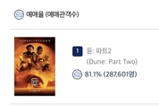 2024년 대한민국을 강타할 최강 블록버스터 <듄: 파트2>가 2월 27일(화) 오전 9시 30분, 영화관입장권 통합전산망에서 사전예매량 287,601장을 기록했다. <듄: 파트2>는 전편 <듄>의 예매량 66,022장을 3배 이상 뛰어넘었다. 또한 2024년 첫 300만 관객 돌파한 외국영화 <웡카> 의 개봉 하루 전 사전 예매량인 128,391장(1/30(화) 오전 9시 30분 기준)을 뛰어넘었다. 이로서 <듄: 파트2>는 주연 배우인 티모시 샬라메 본인의 흥행 기록을 뛰어넘으며 2024년 극장가 흥행 바통터치를 이어나갈 것으로 전망된다. <듄: 파트2>는 현재 글로벌 영화 평론 및 평점 사이트 로튼토마토에서 신선도지수 97%를 기록 중이며 국내 유수 매체들 또한 입을 모아 ‘새로운 마스터피스의 탄생’이라는 평으로 개봉 전 분위기를 뜨겁게 예열하고 있다. 이뿐만이 아니다. 프리미어 시사를 통해 영화를 미리 관람한 관객들은 “더할 나위 없었다, 감상을 넘어선 체험”, “반드시 영화관에서 봐야 하는 영화”, “동시대에 극장에서 볼 수 있다는 것이 행운!!” 등 오직 극장에서만 경험할 수 있는 &