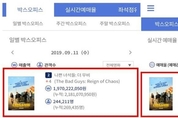 영화진흥위원회 통합전산망(9/12(목) 오전 7시 기준)에 따르면 <나쁜 녀석들: 더 무비>는 개봉 첫 날인 11일(수) 하루 동안 244,211명의 관객을 동원하며 쾌조의 스타트를 알렸다. 올 추석개봉작인 <타짜: 원 아이드 잭>과 <힘을 내요, 미스터 리> 등 화제작이 쏟아진 추석 극장가 대전 속에서 이뤄낸 것으로 이목을 집중시킨다. 뿐만 아니라, 이러한 성적은 ‘MCU’(마동석 시네마틱 유니버스)라 불리는 마동석의 세계관이 담긴 최고 흥행작으로 2017년 추석 개봉 당시 누적 관객수 687만 명을 기록한 범죄 액션 영화 <범죄도시>(164,399명)와 2019년 칸 국제영화제 초청작으로 관심을 더했던 <악인전>(175,397명)의 오프닝 스코어까지 가뿐히 제친 기록이라서 마동석을 누른 마동석의 행보가 어디까지 이어질지 더욱 주목할만하다. 여기에 올 추석 극장가의 동시기 경쟁작들을 제치고 전체 예매율 1위를 탈환하는 거침없는 행보까지 보여주고 있어 <나쁜 녀석들: 더 무비>가 앞으로의 연휴 기간 동안 보여줄 흥행 행보에 귀추가 주목된다. 한편, 영화 <나쁜 녀석들: 더 무비>는