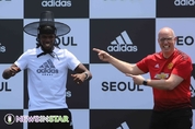 13일 오후 서울시 용산구 용산아이파크몰 아디다스 더베이스에서 열린 아디다스 아시아 투어 미디어 컨퍼런스에잉글랜드 프리미어리그(EPL) 맨체스터 유나이티드의 폴 포그바 선수가 참석해 포토타임을 갖고 있다. 아디다스의 초청으로 방문한 폴 포그바는 이날 미디어와의 인터뷰 이후 미니 토크쇼, 골 세리머니 배틀, 컨트롤 챌린지, 스페셜 풋살 매치 등을 통해 국내팬들과 즐거운 시간을 가졌다.