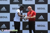 13일 오후 서울시 용산구 용산아이파크몰 아디다스 더베이스에서 열린 아디다스 아시아 투어 미디어 컨퍼런스에잉글랜드 프리미어리그(EPL) 맨체스터 유나이티드의 폴 포그바 선수가 참석해 아디다스 코리아 에드워드 닉슨 대표에게 사인볼을 선물하고 있다. 아디다스의 초청으로 방문한 폴 포그바는 이날 미디어와의 인터뷰 이후 미니 토크쇼, 골 세리머니 배틀, 컨트롤 챌린지, 스페셜 풋살 매치 등을 통해 국내팬들과 즐거운 시간을 가졌다.