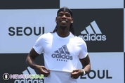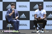 13일 오후 서울시 용산구 용산아이파크몰 아디다스 더베이스에서 열린 아디다스 아시아 투어 미디어 컨퍼런스에잉글랜드 프리미어리그(EPL) 맨체스터 유나이티드의 폴 포그바 선수가 참석해 질의 응답 시간을 갖고 있다. 아디다스의 초청으로 방문한 폴 포그바는 이날 미디어와의 인터뷰 이후 미니 토크쇼, 골 세리머니 배틀, 컨트롤 챌린지, 스페셜 풋살 매치 등을 통해 국내팬들과 즐거운 시간을 가졌다.