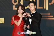 12월 31일 오후 서울시 영등포구 여의도 KBS 신관 웨딩홀에서 '2019 KBS 연기대상' 레드카펫 행사가 열려 '조선로코-녹두전' 배우 김소현, 장동윤이 참석해 포토타임을 갖고 있다.