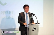 22일 오후 서울시 중구 을지로 SK텔레콤 본사 '행복 커뮤니티 런칭 세레모니'행사가 열려 SK텔레콤 박정호 사장이 참석해 인사말을 하고 있다.