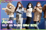 [뉴스인스타 양철수기자] 2월 17일(목) 오후, 서울시 양천구 목동 SBS방송센터에서 진행되는 SBS ‘두시탈출 컬투쇼’ 생방송 출연을 위해 그룹 에이핑크(Apink) 정은지, 박초롱, 윤보미, 김남주, 오하영이 방송국에 도착해 포즈를 취하고 있다. ’뉴스인스타' YouTube 구독! 購讀! subscription! ☞ https://bit.ly/382rlK3
