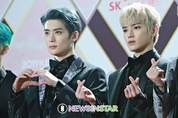 27일 오후 경기도 고양시 일산서구 대화동 킨텍스에서 '2019 KBS 가요대축제’가 진행돼 식전행사인 포토월을 진행하고 있다. 이날 포토월에 그룹 NCT 127 재현과 태용이 참석해 포즈를 취하고 있다.
