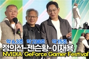 [뉴스인스타 양철수기자] 10월 30일(목) 오후, 서울시 강남구 삼성동 코엑스 K-POP 광장에서 지포스(GeForce) 한국 25주년 기념 'GeForce 게이머 페스티벌'이 열려 NVIDIA 젠슨 황 CEO, 삼성전자 이재용 회장, 현대자동차그룹 정의선 회장이 무대에 올라 인사를 하고 있다. 이날 젠슨 황 엔비디아 CEO, 삼성전자 이재용 회장, 현대자동차그룹 정의선 회장이 ‘치맥’ 회동 후 지포스 게이머 페스티벌을 찾았다. ’뉴스인스타' YouTube 구독! 購讀! subscription! ☞ https://bit.ly/382rlK3